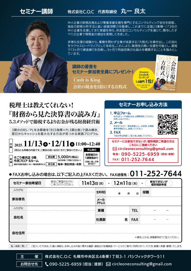 そごう横浜店市民フロアにて、税理士は教えてくれない!「財務から見た決算書の読み方」セミナーを開催します。5.3メソッドで節税するよりお金が残る財務経営術です。